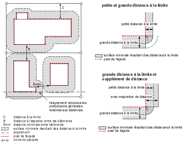Surface constructible délimitée dans le cadre d’un plan d’affectation et qui peut s’écarter des règles de distances.