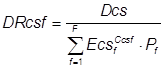 Pour chaque commune f (f = 1, ..., F), le transfert Tcsf est fonction de la population Pf, de l’écart de charges structurelles Ecsf et de la dotation relative DRcsf selon la formule suivante: