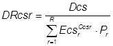 Pour chaque commune r (r = 1, ..., R), le transfert Tcsr est fonction de la population Pr, de l’écart de charges structurelles Ecsr et de la dotation relative DRcsr selon la formule suivante: