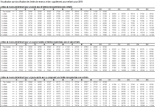 2Les limites de revenu déterminant varient en fonction du nombre d’enfants mineurs à charge conformément à l’annexe.