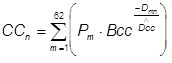 Le coefficient de centre CCn de la commune centre n (n = 1, ..., 3) est fonction de la population Pm de la commune m (m = 1, ..., 62) et de la distance Dmn qui sépare la commune m du centre n selon la formule suivante: