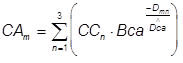 Le coefficient d’accessibilité CAm de la commune m (m = 1, ..., 62) est fonction du coefficient de centre CCn de la commune centre n (n = 1, ..., 3) et de la distance Dmn qui sépare la commune m du centre n selon la formule suivante: