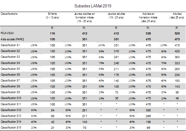 Art. 4 L’enfant mineur ou le jeune adulte en formation initiale issu de l'unité économique de référence (UER) pour une personne seule ou pour un couple au sens de la LHaCoPS dont le revenu déterminant est égal ou inférieur au revenu figurant dans l’annexe, bénéficie de subsides pour le paiement de ses primes. Les classifications S1 à S13 pour les enfants, les jeunes adultes en formation initiale et les adultes en formation initiale concrétisent la classification ’’OSL’’ (Objectif social LAMal).