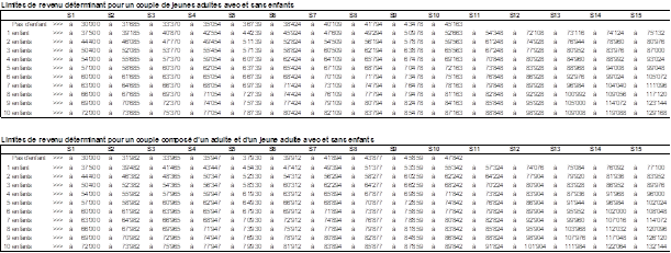 2Les limites de revenu déterminant varient en fonction du nombre d’enfants mineurs à charge conformément à l’annexe.
