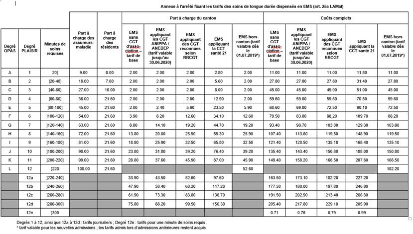 2Les tarifs fixés dans l’annexe concernant les EMS hors canton s’appliquent aux résidents accueillis dès le 1er juillet 2019.