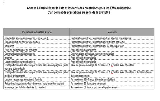 1* Tarifs par EMS, déterminés dans le cadre du contrat de prestations.