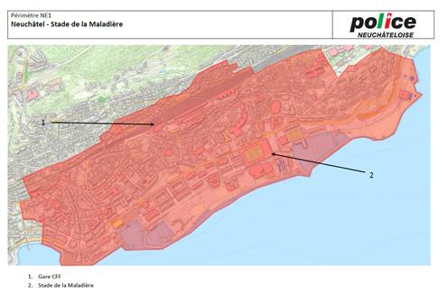 Article premier Le Département de la justice, de la sécurité et de la culture définit les périmètres des zones sujettes à interdiction suivants (selon plans joints en annexe) :